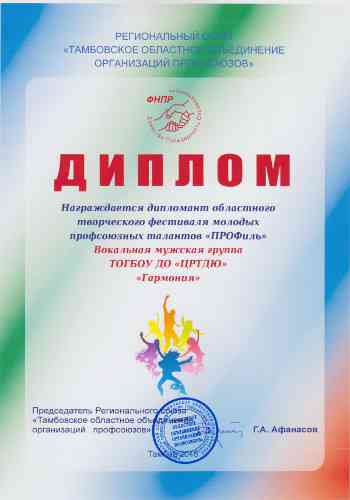 14 декабря в здании Обкома профсоюзов состоялся областной творческий  фестиваль молодых профсоюзных талантов «Профиль», в котором приняли активное участие сотрудники ТОГБОУ ДО «Центр развития творчества детей и юношества».