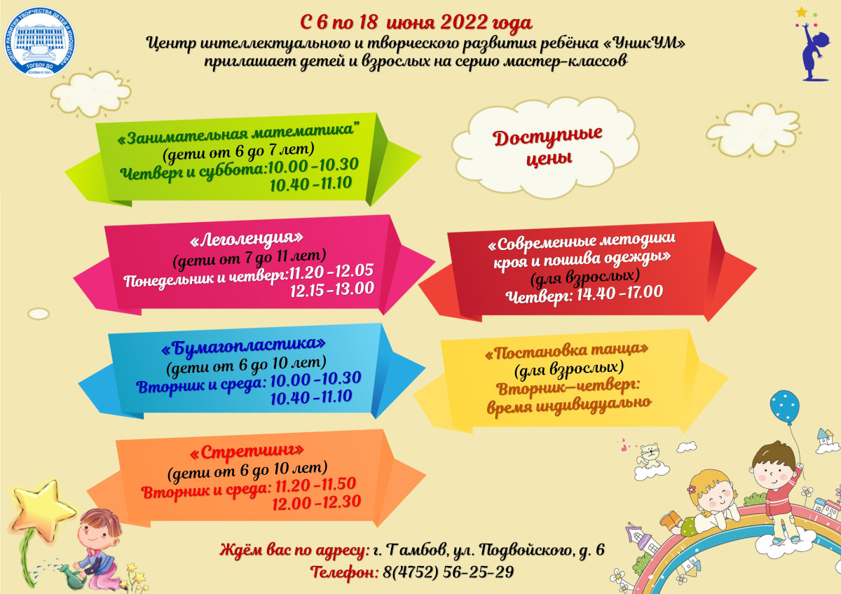 В Центре интеллектуального и творческого развития ребёнка «УникУМ» с 6 по 18 июня будет организована серия летних мастер-классов «Творческое лето».